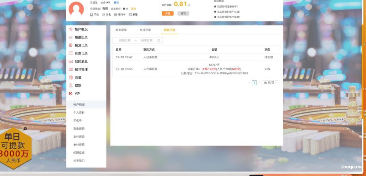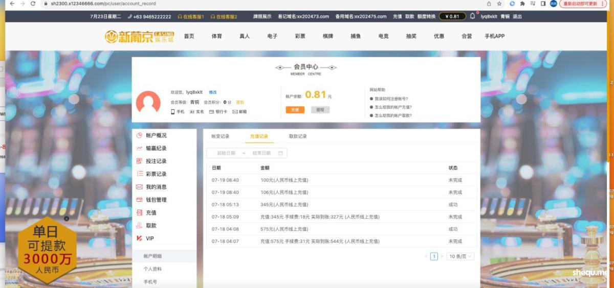 新葡京娱乐充值两次,提款一直未到帐。