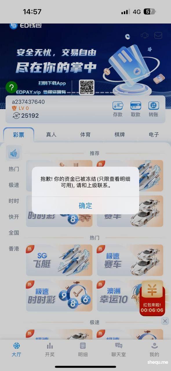 我抱着试试的心态 充值了1000元 1000元我觉得很少 就玩玩电子游戏算了 谁知道赢了23000块 在提款的时候 直接冻结了我的账户 不给我出款 我问客服 他说是我注单有问题 让我4天后咨询客服 我就等到9月3号又咨询了客服 9月3号又咨询客服 说等10号 这个平台妈的一点格局都没有 1000元人名币都黑 妈的 还不够我嫖娼呢 大家避雷。