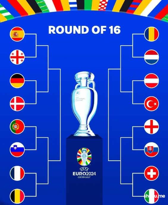 上半区:西班牙vs格鲁吉亚、德国vs丹麦、葡萄牙vs斯洛文尼亚、法国vs比利时;